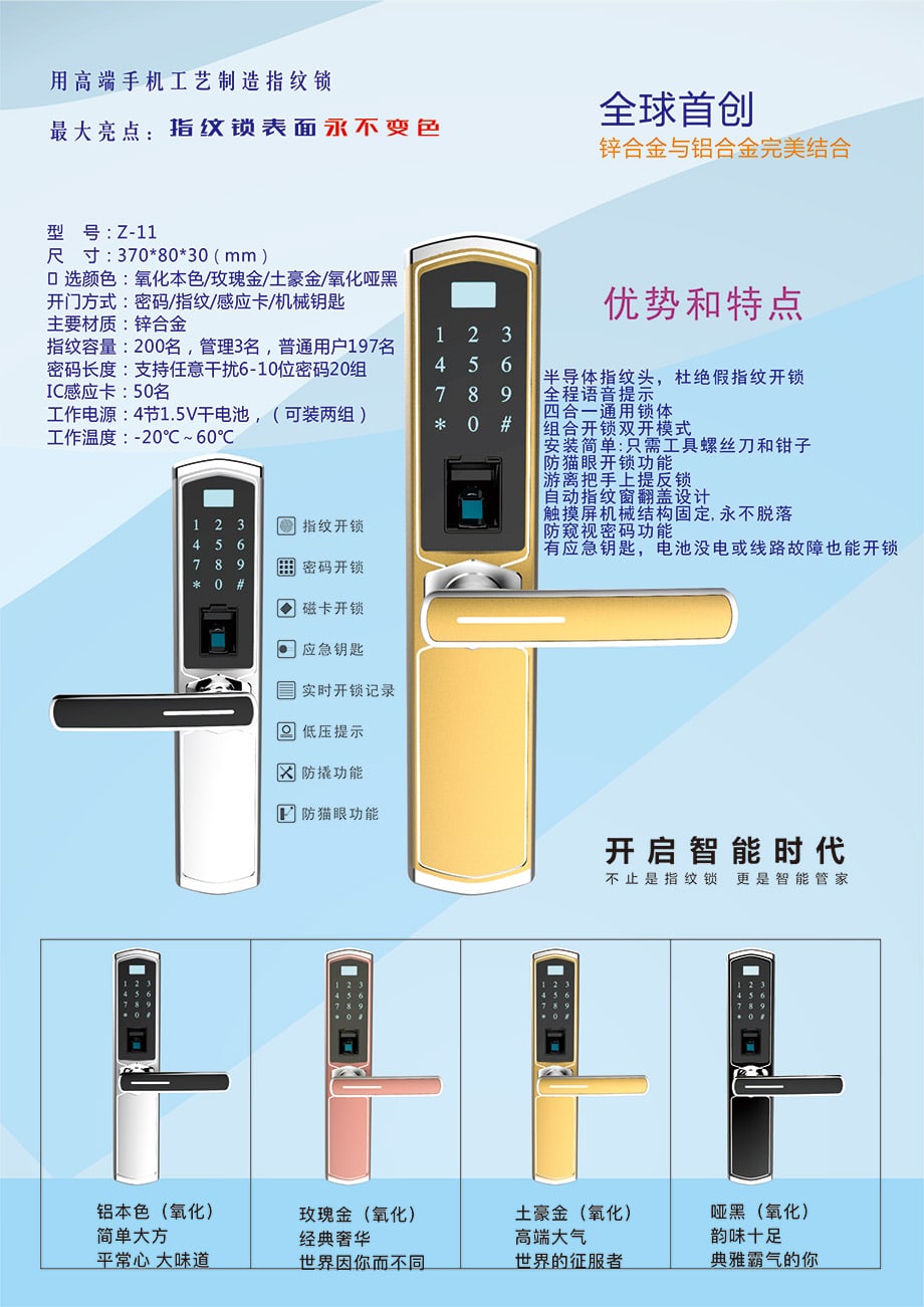 智能锁Z-11土豪金